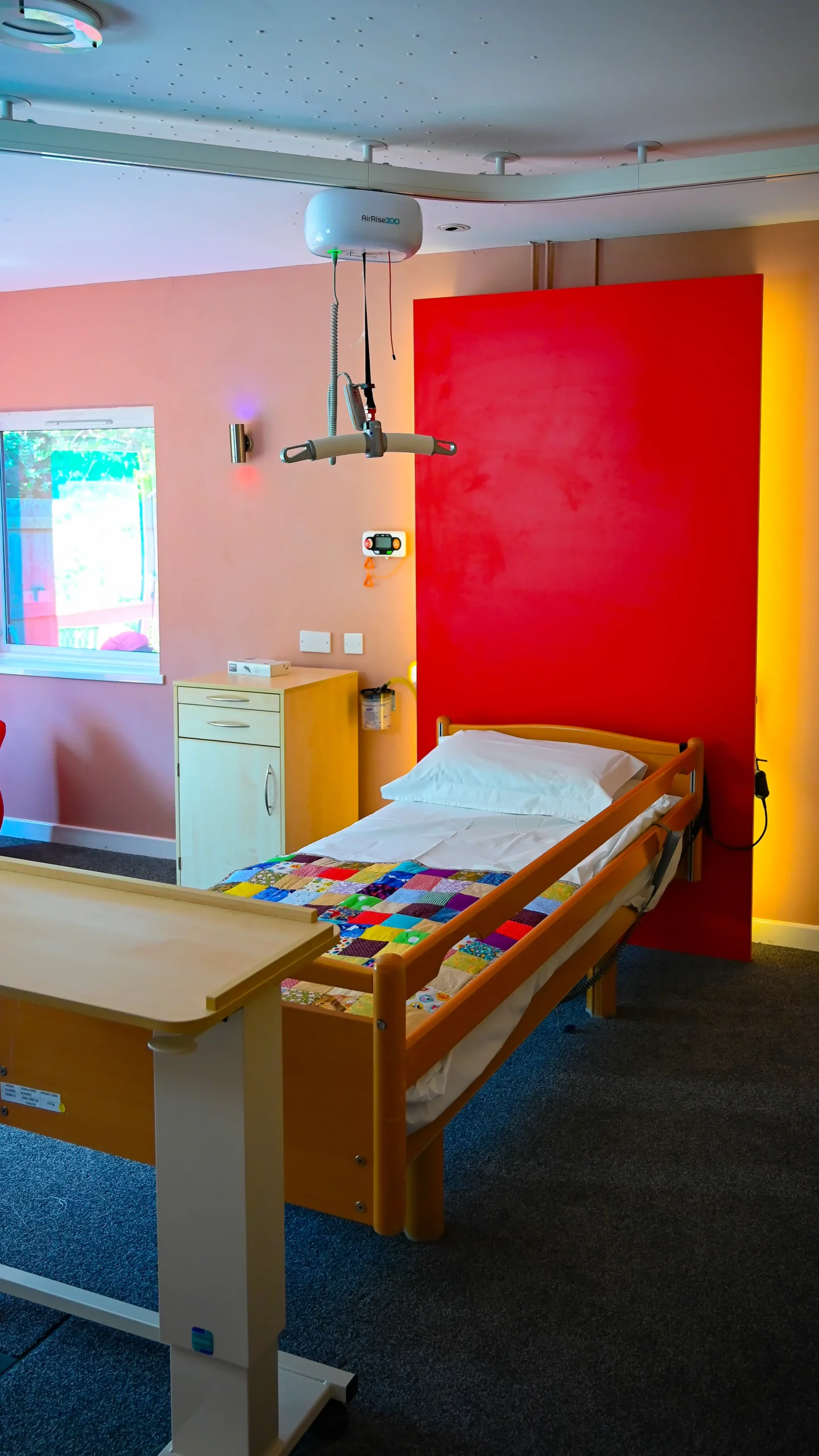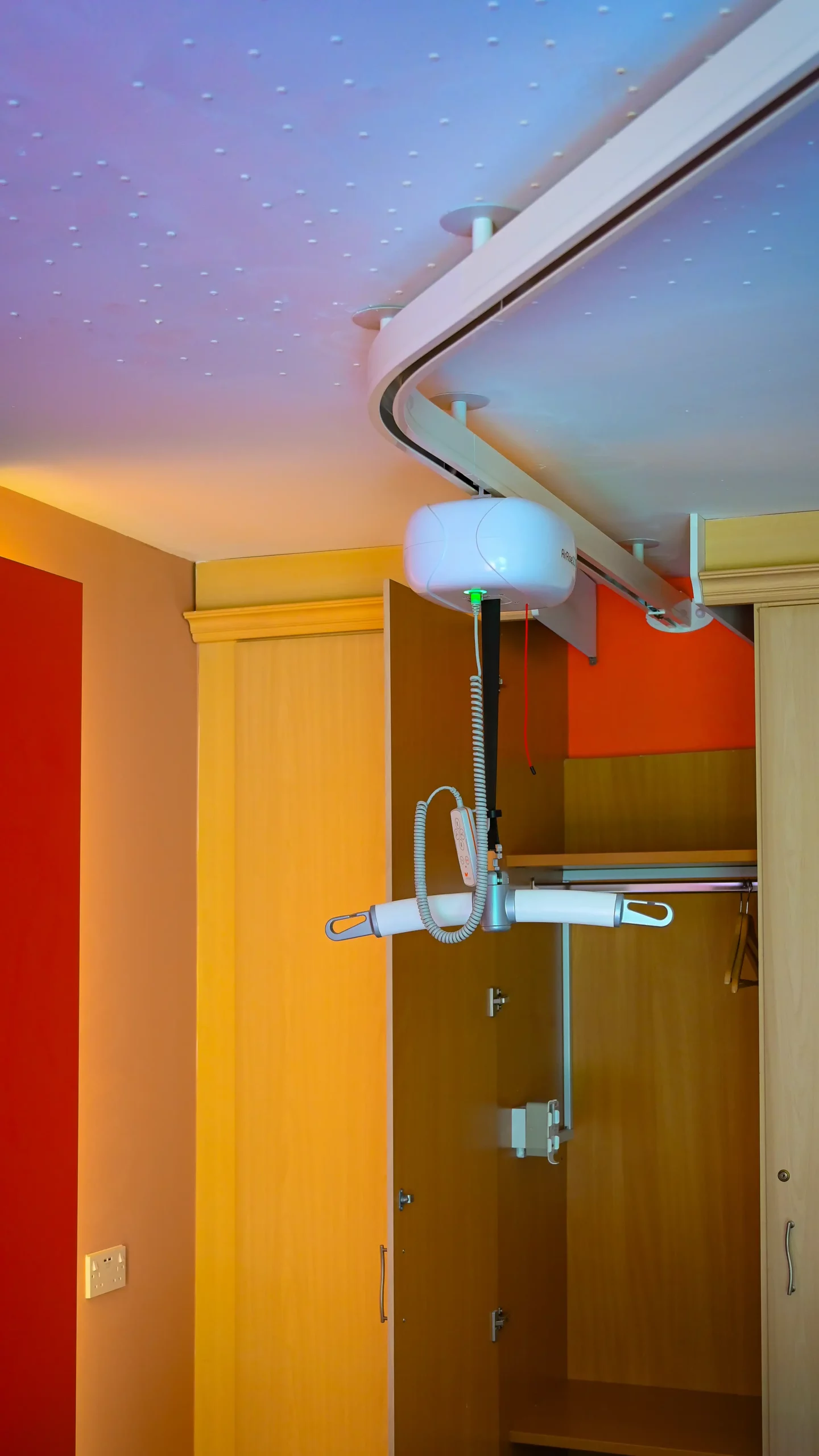 In order to prevent the bedrooms having a clinical look, we installed below hung monorail overhead ceiling track hoist systems, that enabled the hoist units to be discreetly stored in a cupboard when not in use.
