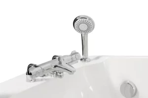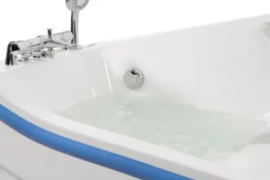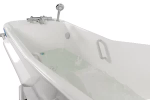 The powered swing seat moves smoothly from the outside of the bath into the bathing position, allowing users to remain seated throughout the transfer.